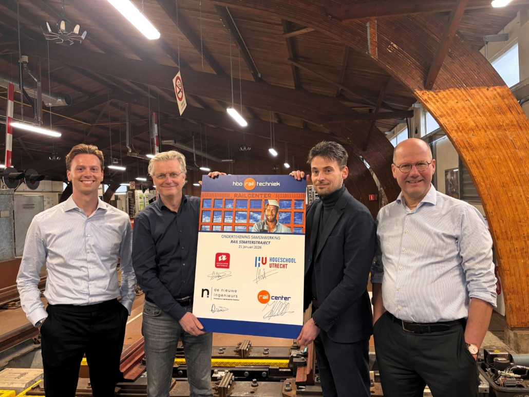 Afgelopen woensdag (21 januari 2026) is de samenwerkingsovereenkomst ondertekend door Hogeschool Rotterdam, Hogeschool Utrecht, Railcenter en De Nieuwe Ingenieurs. Daarmee is de Railstartersopleiding officieel van start gegaan.